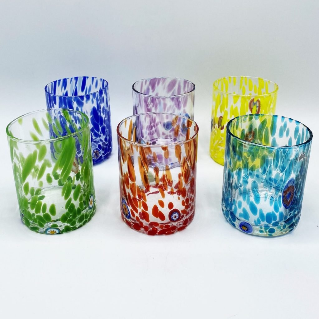 Una artigianalità riconosciuta nel mondo, i vetri di murano qui utilizzati per dei bellissimi bicchieri colorati sono uno degli oggetti più richiesti dagli stranieri che visitano Venezia.