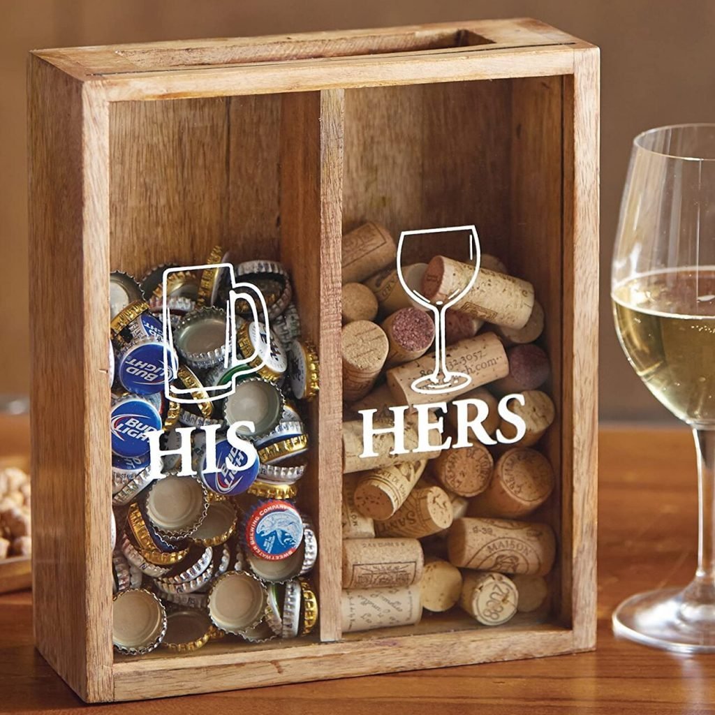 Un vero bevitore non butta i tappi delle proprie bevute, li conserva e li espone con fierezza, con questa teca porta tappi. Ecco un'idea regalo per una coppia alcolica amante della birra e del vino.