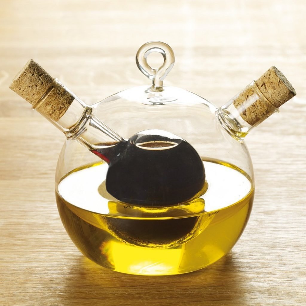 Ancora alla ricerca di un set da olio e aceto dal design carino e comodo da usare? Eccone uno per te: una sfera in vetro con dentro un'altra sfera in vetro per il tuo olio e aceto da tavola. Design studiato e di facile utilizzo.