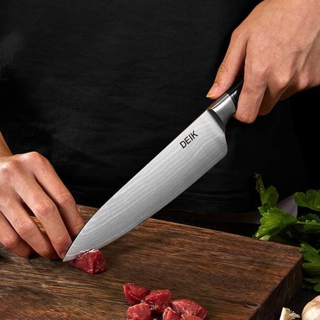 L'acciaio è il materiale essenziale per un buon coltello da cucina durevole e affilato, ed in particolare, l'acciaio damasco è il re degli acciai. Questo coltello Deik è composto da 67 strati di damasco, forgiato per chef professionisti o appassionati.