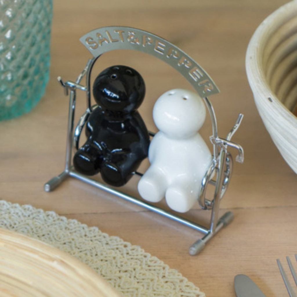 La tua solita composizione sale e pepe ti intristisce? Eccoti una saliera e pepiera sicuramente diverse dal solito… Questi due simpatici omini soddisferanno la tua voglia di nuovo sulla tavola?