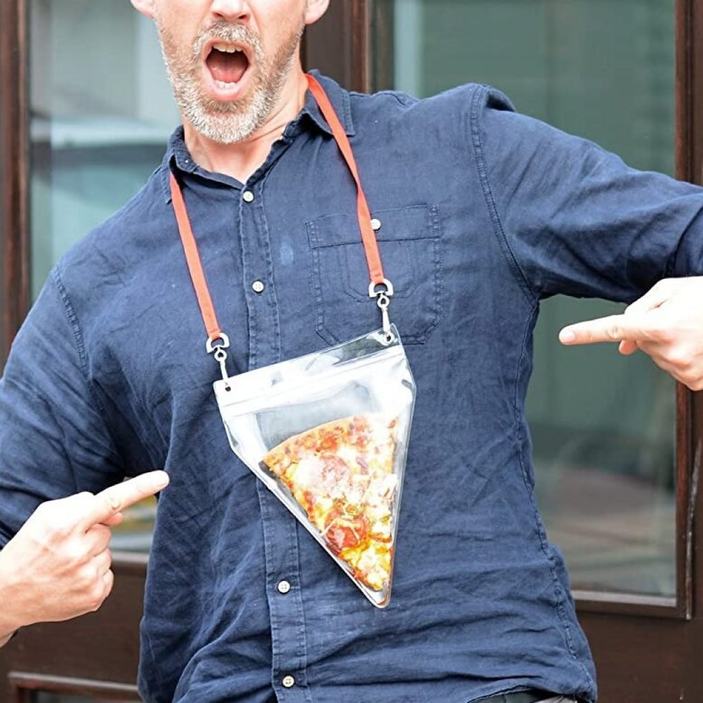 Non rinunciare a portarti ovunque la tua fetta di pizza solo perché è impossibile incartare una singola fetta di pizza. Con questa custodia trasporterai perfettamente la tua fetta preservandone la fragranza, in bella vista al tuo collo, pronta per essere mangiata quando vuoi.
