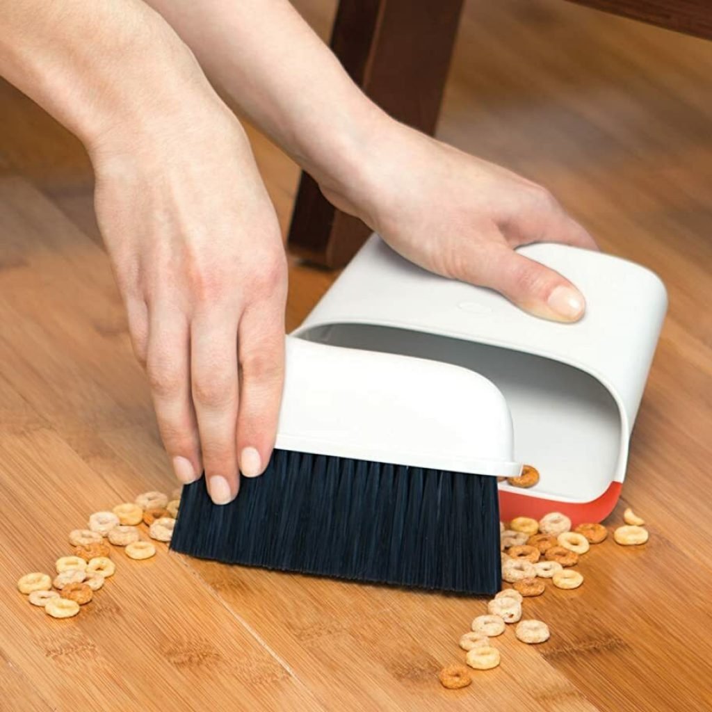 Quelle quattro o cinque briciole che si manifestano fisse sul tuo pavimento non hanno più speranza di esistere. Spazzale vie con questa mini scopa e paletta dal design ad incastro. Una versione cool della classica scopa e paletta che non è brutta da vedere e fa il suo dovere in casa.