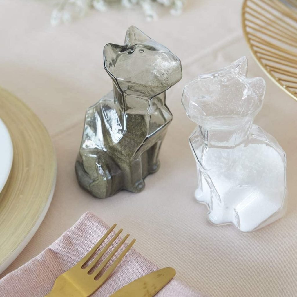 Cerchi un set sale e pepe diverso dal solito senza scadere nel trash eccessivo? Ecco per te saliera e pepiera reinterpretate come due gatti dal design semplice e incisivo.