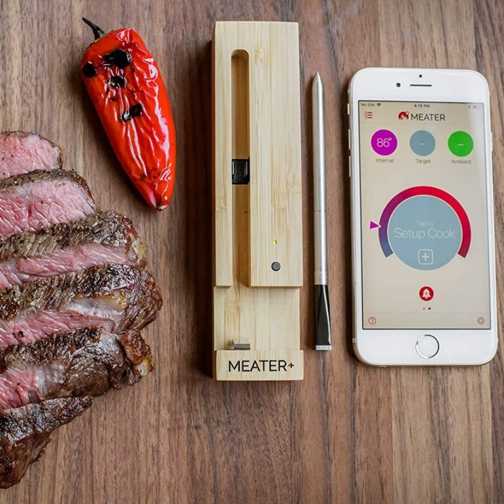 Cuoci la tua bistecca sempre perfettamente e qualsiasi altra bestia da mettere sul barbecue, con questa sonda senza filo. Grazie alla tecnologia bluetooth questa sonda infilzata nel cuore della carne comunica i gradi di temperatura interna raggiunta al tuo smartphone. Mai più carne troppo cotta oppure cruda.