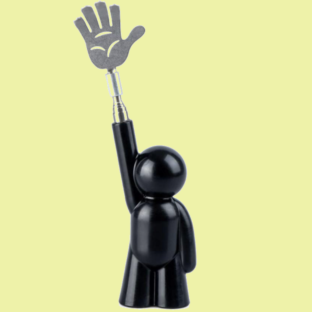 La schiena è piena di pruriti e formicolii che non riesci a raggiungere con le tue mani? Ci vorrebbe un amico che ti gratti la schiena. Eccone uno! Questo piccolo omino nero ha un'utilissima manina telescopica in ferro che si allunga per ben 52 centimetri. Fallo diventare il tuo compagno da scrivania.