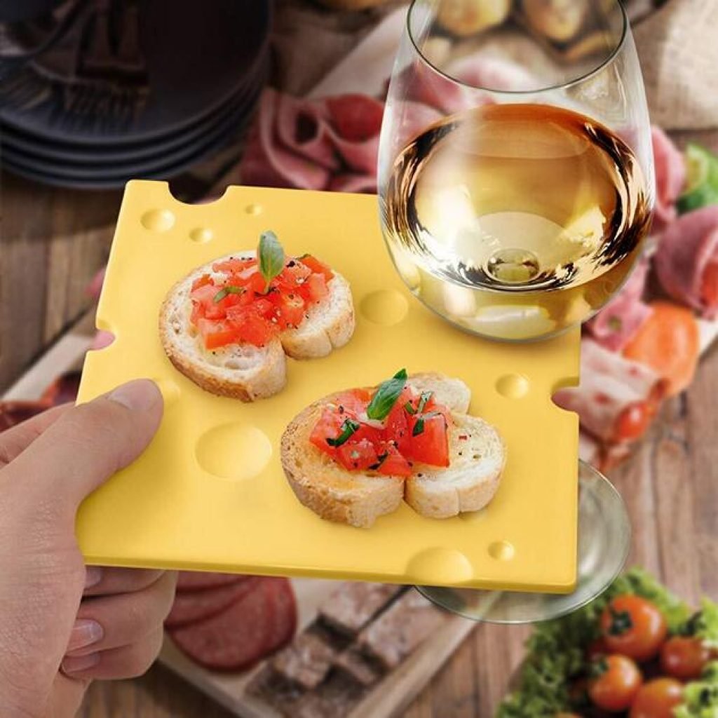 Quando il design incontra la fame all'ora dell'aperitivo nascono oggetti geniali come questo. Un piattino da aperitivo a forma di fetta di formaggio emmental, che grazie ai suoi buchi funziona anche da porta calice di vino.