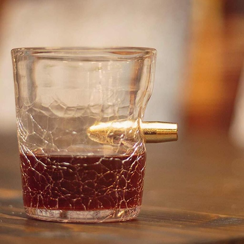 "Spararasi uno shottino"? Adesso sarà possibile farlo letteralmente, grazie a questo bellissimo bicchiere da shot. Il bicchiere è fatto di un vetro effetto "vetro rotto" in cui è incastonato un proiettile!