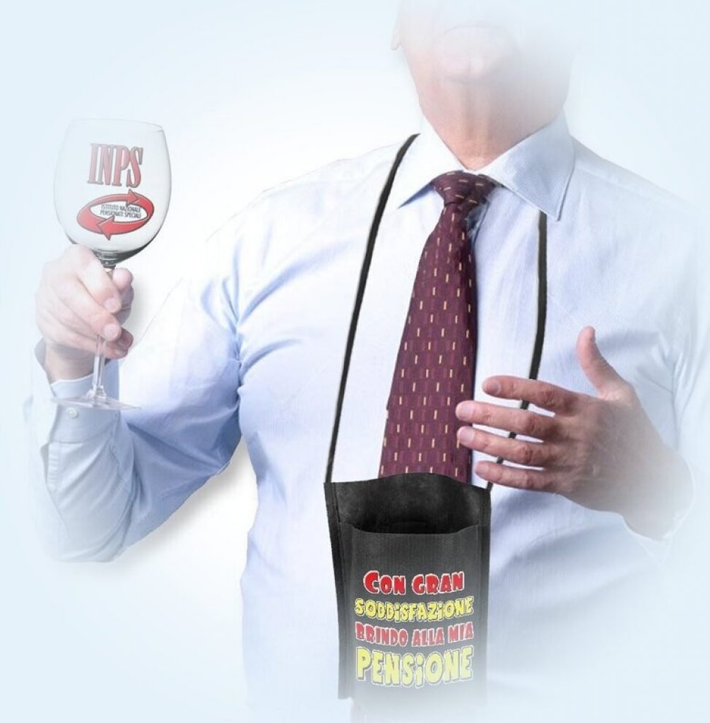 Raggiungere la pensione è sicuramente un traguardo per cui si deve brindare. In questo kit regalo per pensionato, c'è un fantastico bicchiere marchiato INPS e pure un comodo portabicchiere da appendere al collo, perfetto per ogni neo pensionato.
