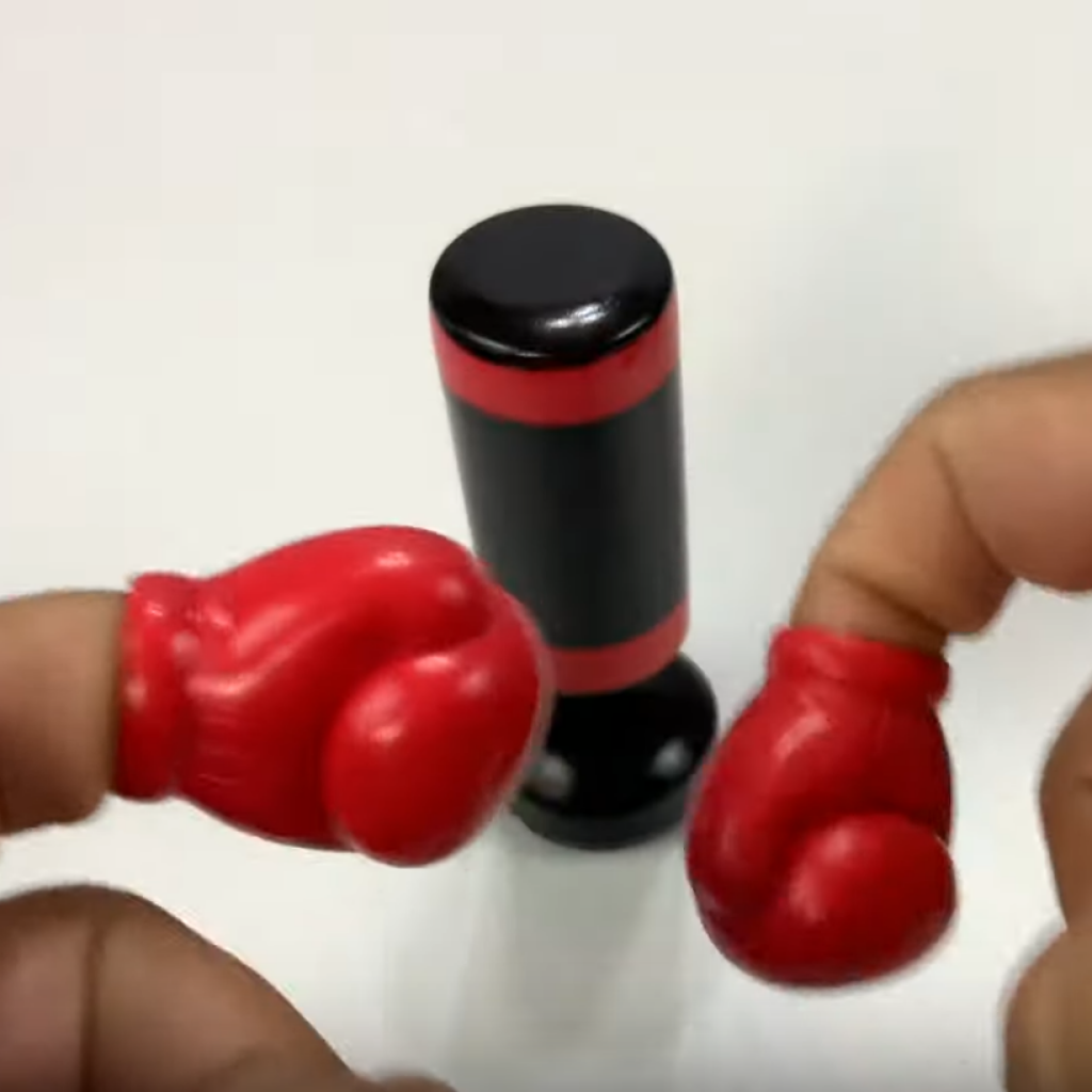 Dopo tutto il giorno passato a occupare le tue dita con attività di precisione, è il momento di lasciarle sfogare! Con questo kit da boxe avrai un fantastico mini sacco da boxe con ventosa e due graziosi guantoni misura dita per picchiare duro.