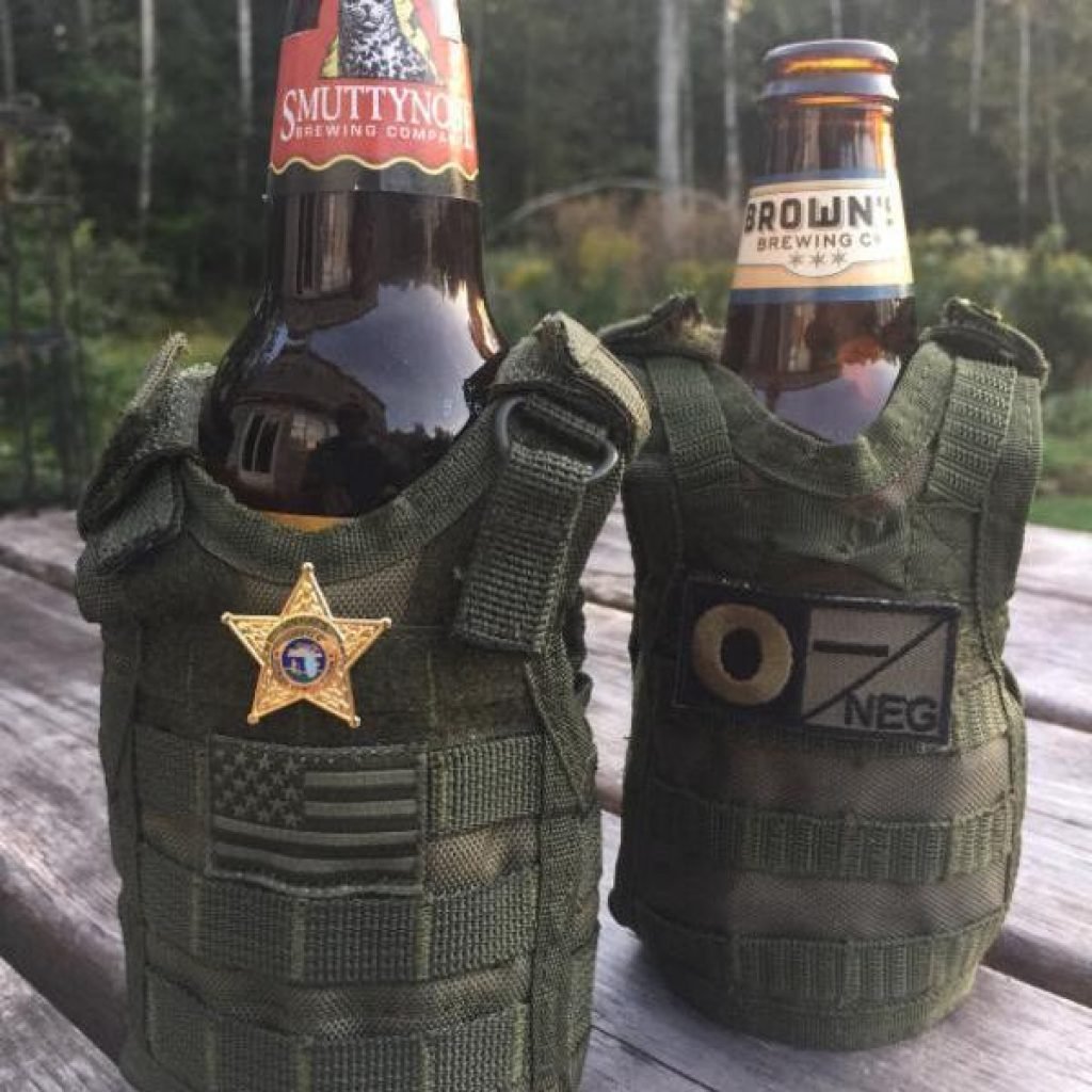 Tieni le tue mani calde e la tua birra sempre ghiacciata e protetta con questo porta birra tattico a forma di giubbotto antiproiettile. Puoi anche personalizzarlo attaccando la targhetta con il tuo nome sul velcro apposito.