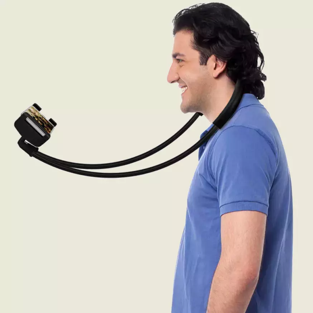 Stanco di dover tenere sempre in mano lo smartphone? Prova questo braccio tieni smartphone per pigri. Si aggancia al tuo collo e si estende esattamente davanti ai tuoi occhi, proprio dove deve essere.