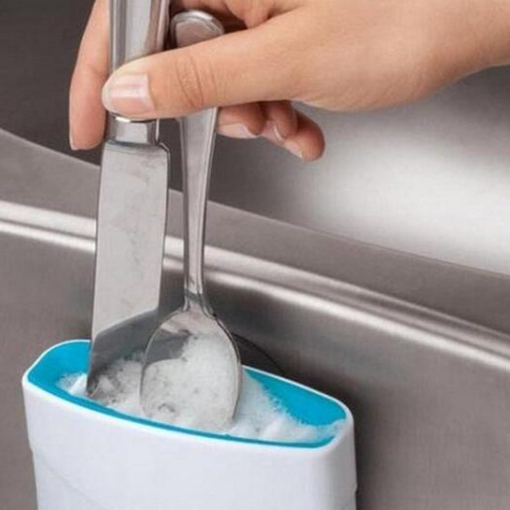 Lavare le stoviglie a mano può essere noioso ma le posate possono essere orribili. Con questo semplice tool, potrai comodamente grattare e lavare tutte le tue posate in modo semplice ed efficace: posizionale dentro il tuo lavello aggiungi sapone per piatti e scrosta ogni singola forchetta e coltello.