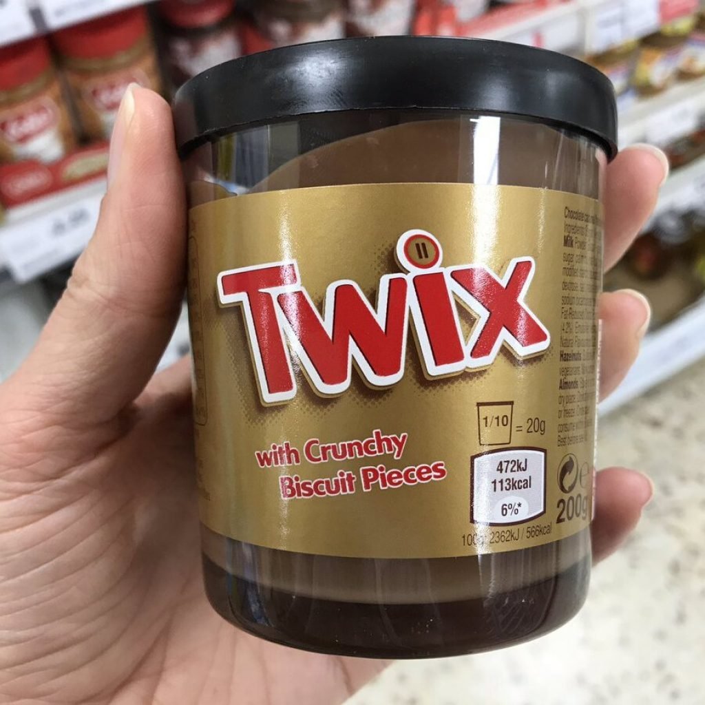 Ti piace il Twix? Allora adorerai la crema spalmabile Twix con pezzettini di biscotto croccante all'interno. Una festa per le papille gustative e una condanna per le tue arterie.