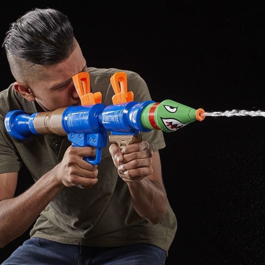 Porta la frenesia del battle royal di Fortnite direttamente in spiaggia con questo fucile/bazooka ad acqua. Diventa il terrore dell'intera spiaggia e semina il panico tra gli ombrelloni.