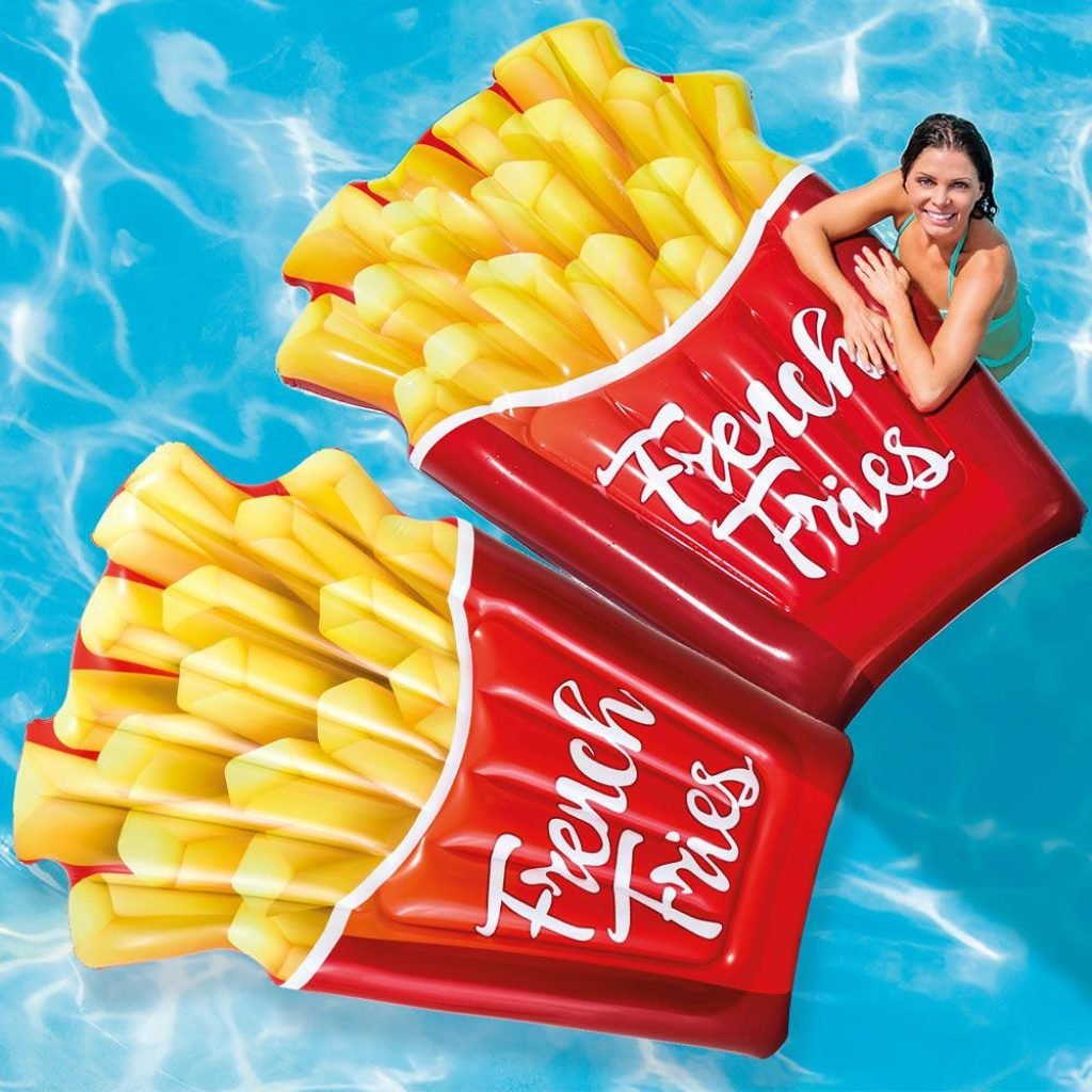 Galleggia e prendi il sole su un bel letto di patatine fritte e dorate al punto giusto. Con questo materassino a forma di patatine fritte ti friggerai al sole in mare senza problemi per ore ed ore…