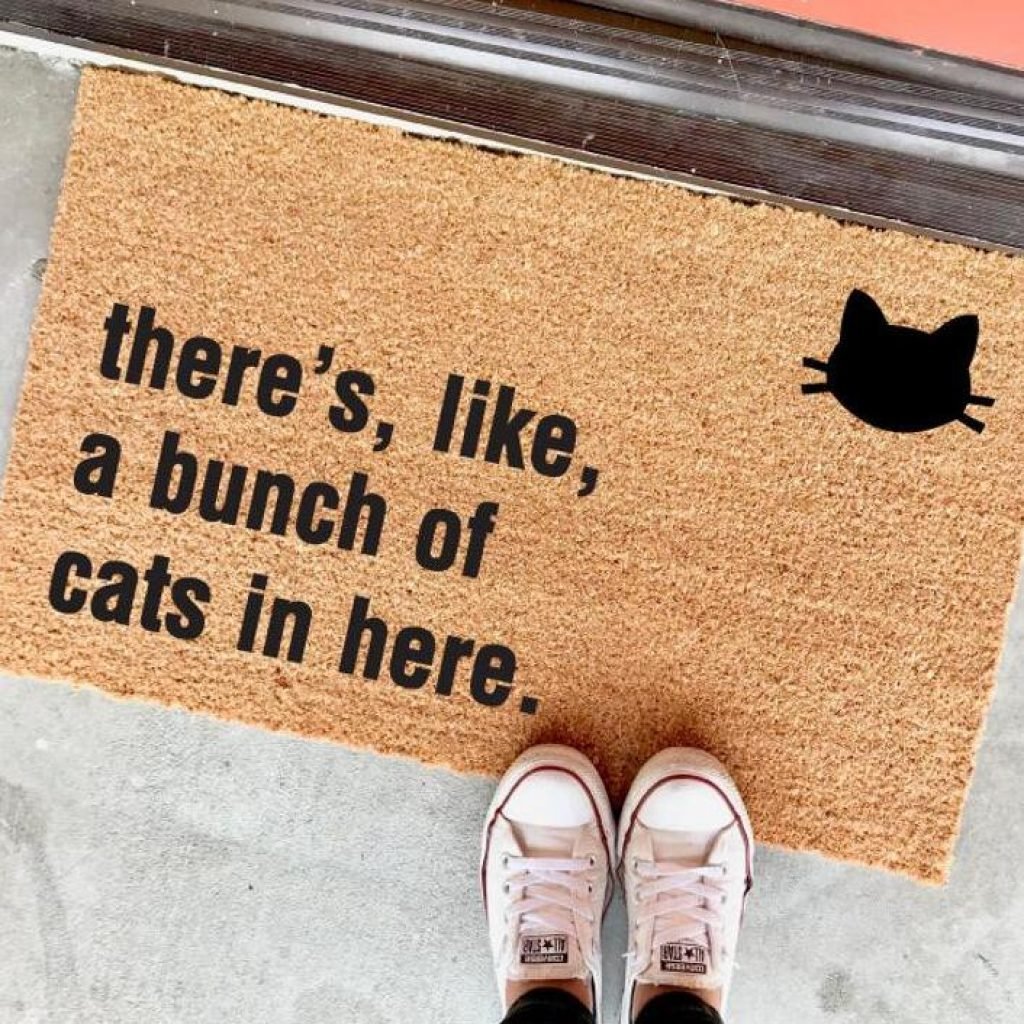 Lascia che chiunque si avvicini alla tua porta di casa, conosca la natura da gattara della padrona di casa. Con questo zerbino l'avvertimento sarà chiaro: "there is a bunch of cats in here!".