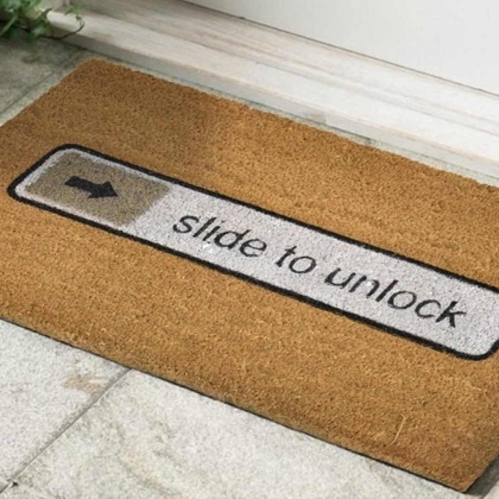Entrare in casa tua è una esperienza più virtuale, ma lo sporco che i tuoi ospiti portano è piuttosto reale? Con lo zerbino "Slide to unlock" ogni singolo ospite si pulirà i piedi prima di entrare e la tua casa sarà più pulita.