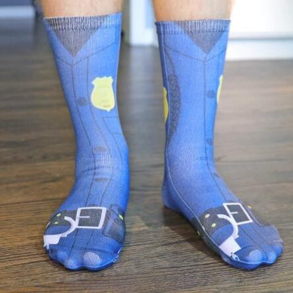 Un poliziotto resta un poliziotto anche quando è fuori servizio. Ancora di più se indossa, anche la notte, questi calzini che indubbiamente indicano la sua professione.