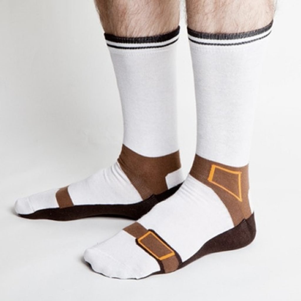 Indossi i sandali con sotto il calzino bianco praticamente ovunque? Ottimo gusto! Ma come fare quando entri in casa di qualcuno che ti chiede di toglierti le scarpe? Conserva il tuo stile unico con questi calzini con sandalo anche quando sei scalzo.
