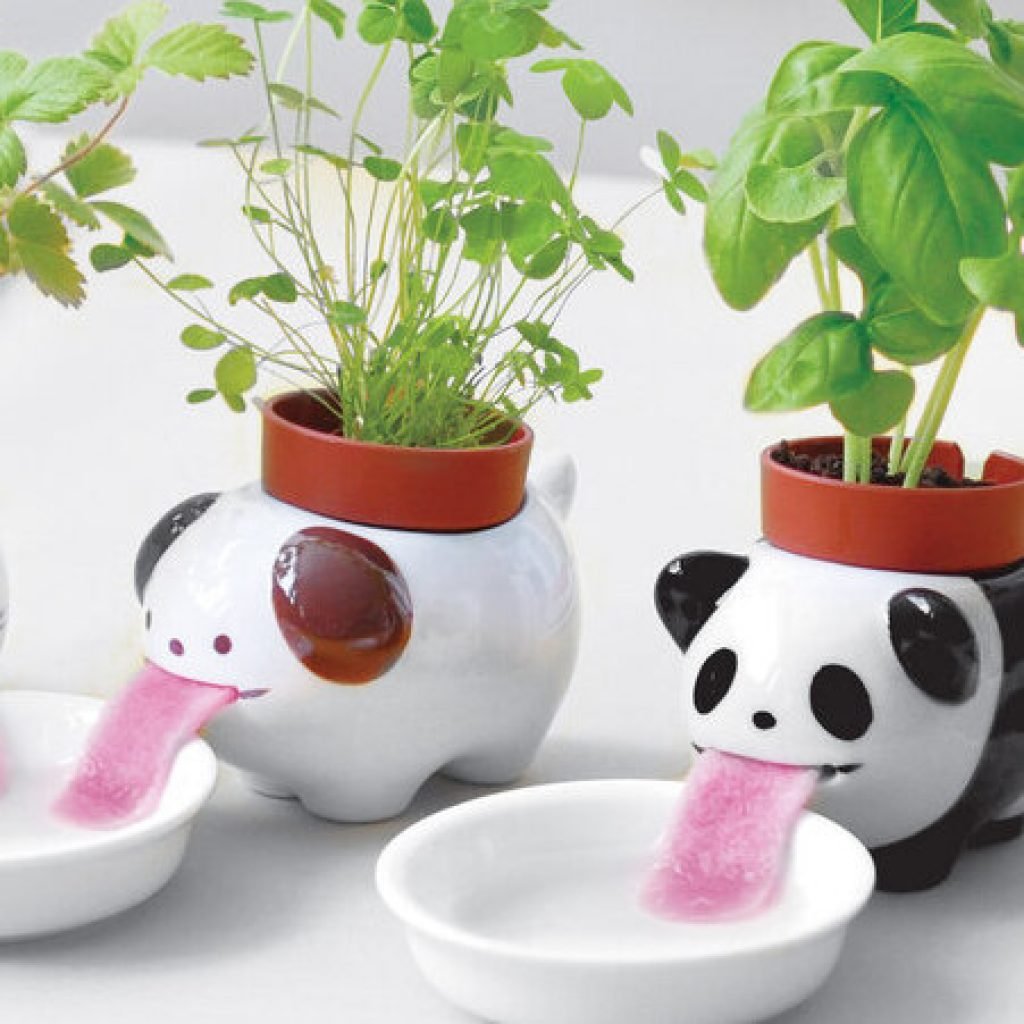 Pianta e fai crescere questa piantina come se fosse un piccolo animale domestico che si auto disseta giornalmente. Metti l'acqua nella ciotola e lascia che il panda/vaso si abbeveri con la sua lunga lingua, senza stress da annaffiatura.