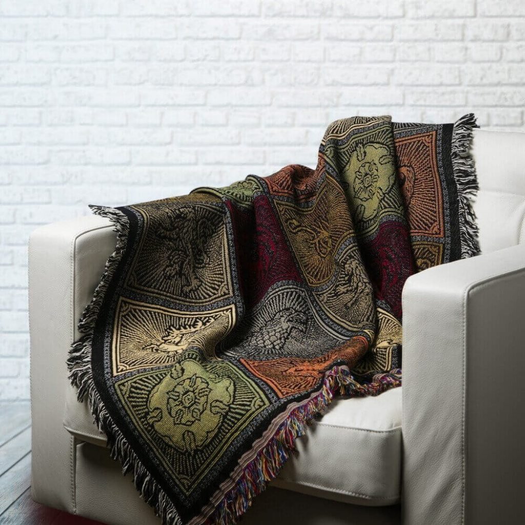 Se il finale dell'ottava stagione del Trono ti ha fatto venire i brividi, lasciati avvolgere dal caldo abbraccio di questa coperta di plaid fantasia Game of Thrones. I sigilli di tutte le casate della mondo di GOT sono in bella mostra su questa bellissima copertina da divano.