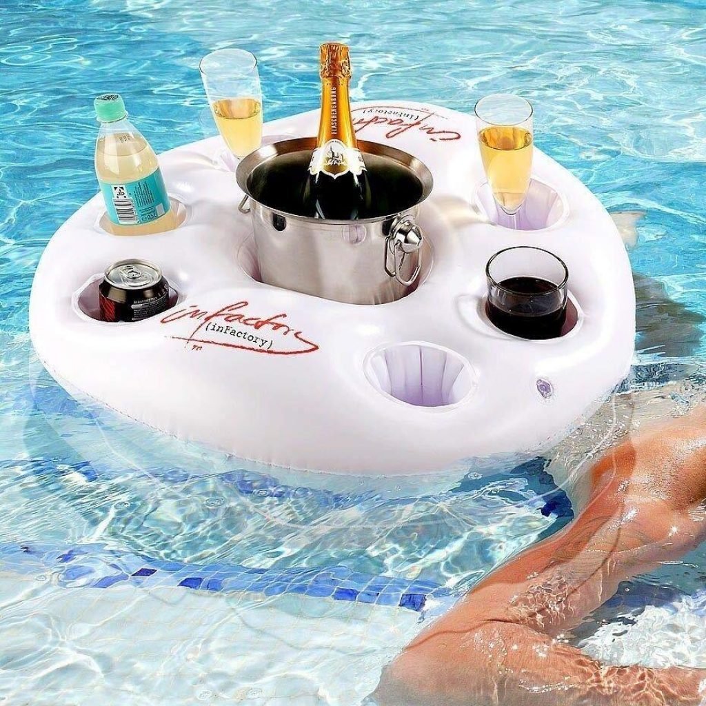 Galleggiare sdraiati in acqua è già un grande traguardo, se poi al tuo fianco ti troverai questo frigorifero galleggiante porta bibite, allora potrai sfiorare la perfezione. Facilmente trasportabile e dotato di portabicchieri esterni, è il sogno di ogni essere acquatico.