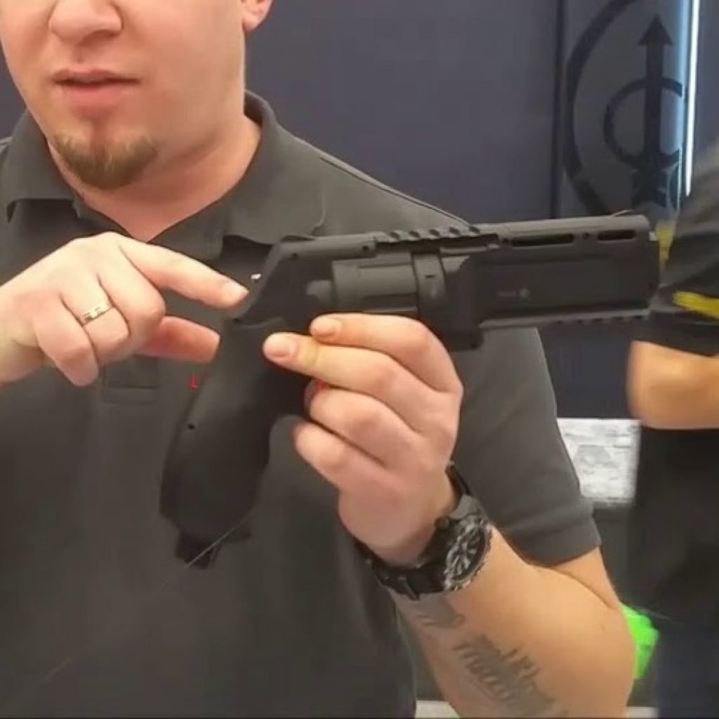 Quando a casa gli ospiti si fanno insistenti e non sai come fargli capire che si è fatto tardi, puoi estrarre questa pistola non letale con pallettoni in gomma e scaricargliela addosso, accelerando il loro avvicinamento alla porta d'uscita. Utile anche per difendersi da intrusi indesiderati rigorosamente disarmati.