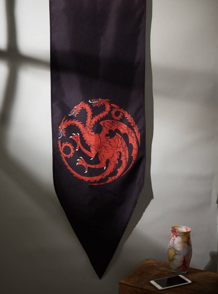 Sei di casa Targaryen? Allora regalati questa bandiera con drago rosso a tre teste in campo nero e urla a tutti i tuoi ospiti "Fuoco e Sangue"! Non dimenticare di ricordare loro, pacatamente, che i Targaryen hanno regnato come casa reale di Westeros per quasi trecento anni!