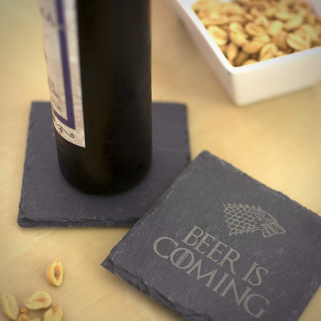 Brinda all'ultima stagione di Game Of Thrones con questi sottobicchieri in ardesia. Scegli la tua casata preferita e comincia a bere come se la barriera fosse crollata!