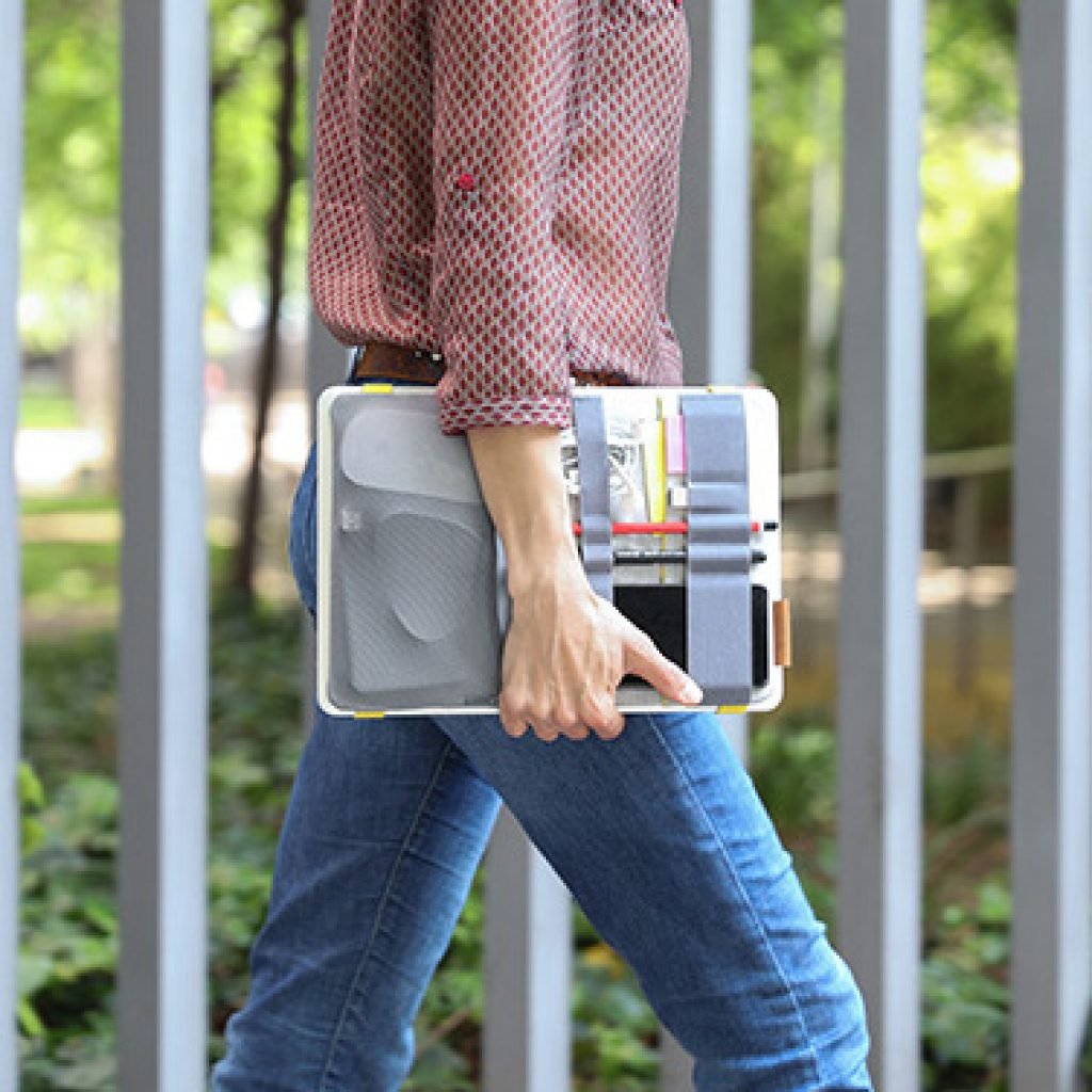 Organizza tutti i tuoi strumenti di lavoro con questa banda elastica oganizer. Disegnata per il tuo stile di vita sempre in movimento, tra un appuntamento e una Skype call, con smartphone, laptop, tablet e ogni accessorio sempre con te. Diventerai una workstation ambulante.