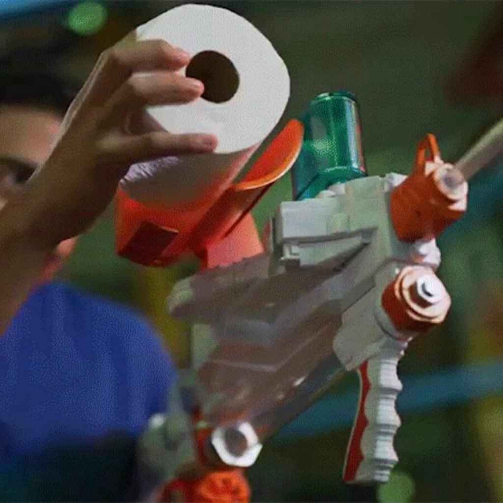 Questo fantastico fucile combina la potenza dell'acqua con la carta igienica, creando delle palline che potrai sparare fino a 9 metri! Regalati due di questi fucili e ingaggia una guerra di palline bagnate con qualcuno. Quando ti ritroverai a corto di munizioni potrai sempre correre al bagno.