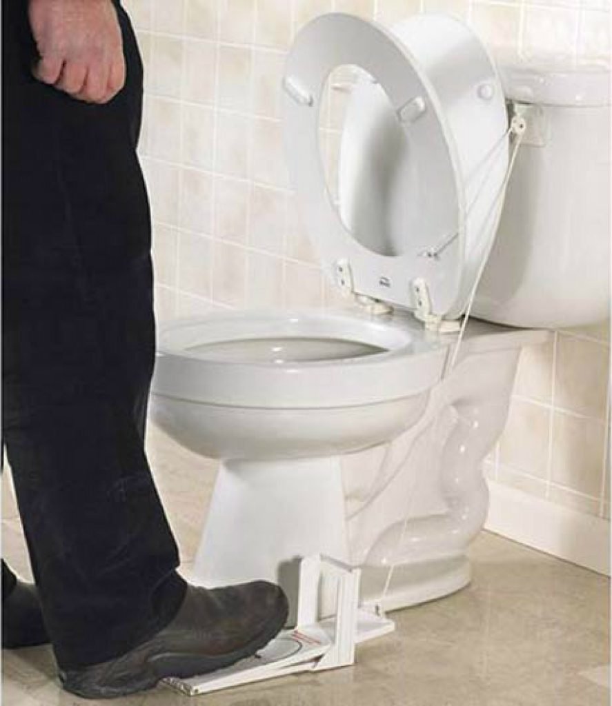 Quando la pigrizia non è poca, anzi è proprio “over 9000”, questo piccolo oggetto può essere molto d’aiuto. Grazie a questo pedale anche i più svogliati e affaticati riusciranno a sollevare la seggetta del water, senza nemmeno doversi piegare: basterà usare il piede e premere il pedale!