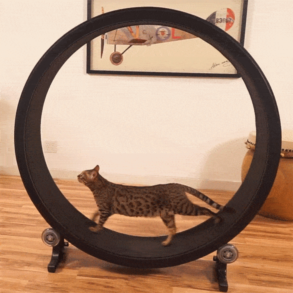 Se anche il tuo gatto si sta avviando verso l’obesità e l’ultima volta che lo hai visto spiccare un salto sulla sedia, era il giorno in cui lo hai adottato, probabilmente necessita di esercizio fisico. Con questa ruota, anche il gatto da appartamento più sedentario potrà farsi delle lunghe camminate per tornare in forma!